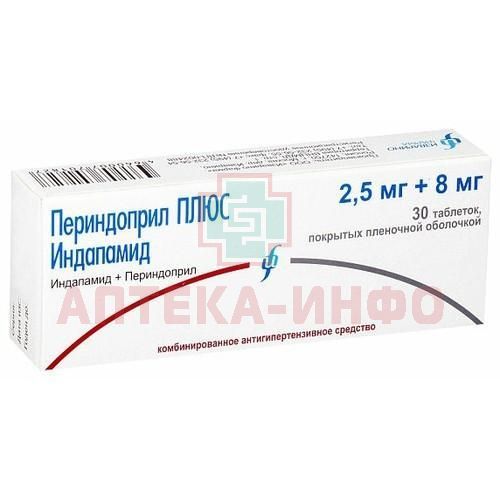 Периндоприл Плюс Индапамид таб. п/пл. об. 2,5мг+8мг №30 Изварино Фарма