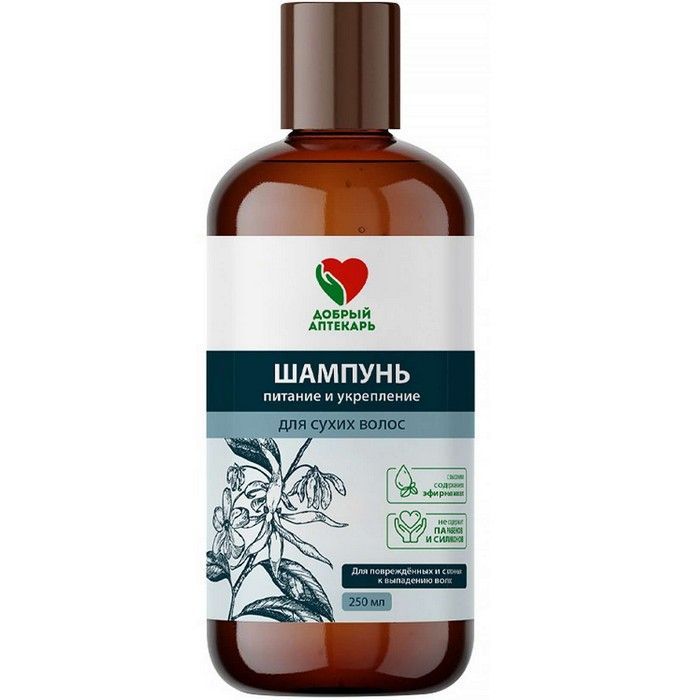 Шампунь ДОБРЫЙ АПТЕКАРЬ Питание и Укрепление д/сухих волос 250мл Дина+/Россия