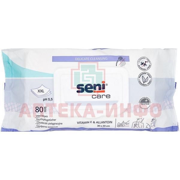 Салфетки Сени (SENI) CARE влажн. д/ухода за больными с вит. Е и аллантоин №80 TZMO S.A./Польша