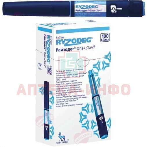 Райзодег ФлексТач картр. в шпр.-ручках ФлексТач (р-р д/подкожн. введ.) 100ЕД/мл 3мл №5 Novo Nordisk/Дания