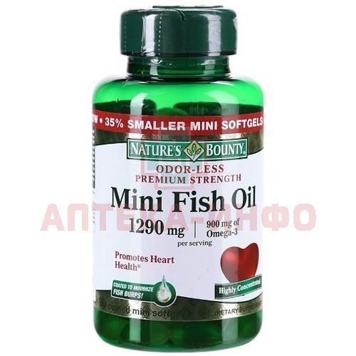 Омега-3 ПНЖК нормализуют липидный обмен и снижают уровень холестерина в крови за счет угнетения синтеза липидов в печени. Регулярный прием Омега-3 предупреждает повышенное тромбообразование и увеличивает эластичность сосудистой стенки, что способствует предупреждению проявлений атеросклероза. Омега-3 ПНЖК непосредственно участвуют в синтезе простагландинов 1 и 3 типа, необходимых для подавления воспалительных процессов в организме, в т.ч. в суставах. Омега-3 являются структурными компонентами клеток иммунной, нервной и сердечно-сосудистой систем, обеспечивая их оптимальное функционирование. Омега-3 входит в состав клеток сетчатки глаза и фермента родопсина, отвечающего за восприятие света. Таким образом, регулярный прием Омега-3 препятствует развитию таких заболеваний глаз, как ретинопатия и возрастная макулярная дегенерация. Мозг человека, без учета воды, на 60% состоит из жирных кислот. Омега-3 помогают улучшить память и концентрацию внимания. А по новейшим данным, Омега-3 способствуют предотвращению развития болезни Альцгеймера. При производстве «Омега-3 900 мг» от Nature’s Bounty используется очистка методом молекулярной дистилляции, что позволяет исключить наличие ртути, свинца и диоксинов в продукте. В суточном приеме содержится 900 мг Омега-3. Преимуществом капсул «Омега-3 900 мг» является их маленький размер (примерно на 35 % меньше капсул других продуктов ПНЖК), что облегчает процесс проглатывания. Мини-капсулы «Омега-3 900 мг» обеспечивают отсутствие специфического рыбьего запаха и послевкусия при приеме.