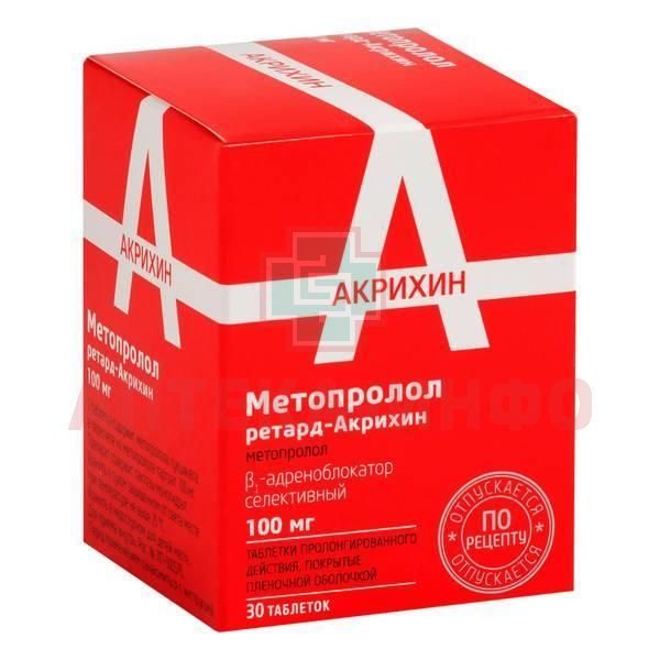 Метопролол Ретард-Акрихин таб. пролонг. действ. п/пл. об. 100мг №30 Акрихин/Россия