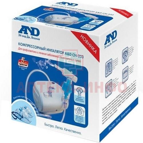 Новейшая модель компрессорного ингалятора (небулайзера) A&D CN-233 для всей семьи. Предназначен для лечения и профилактики заболеваний верхних и нижних отделов дыхательных путей.