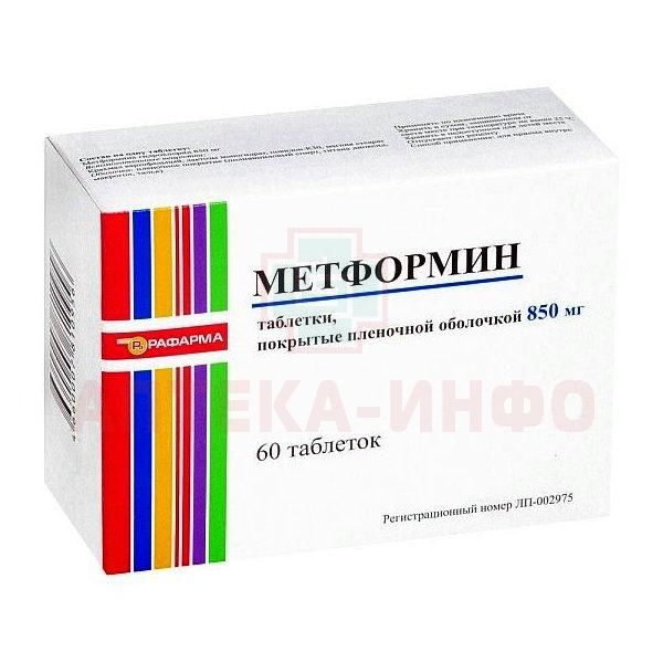 Метформин таб. п/пл. об. 850мг №60 Рафарма/Россия