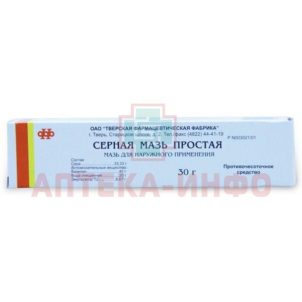 Серная мазь простая туба 30г Тверская ФФ/Россия