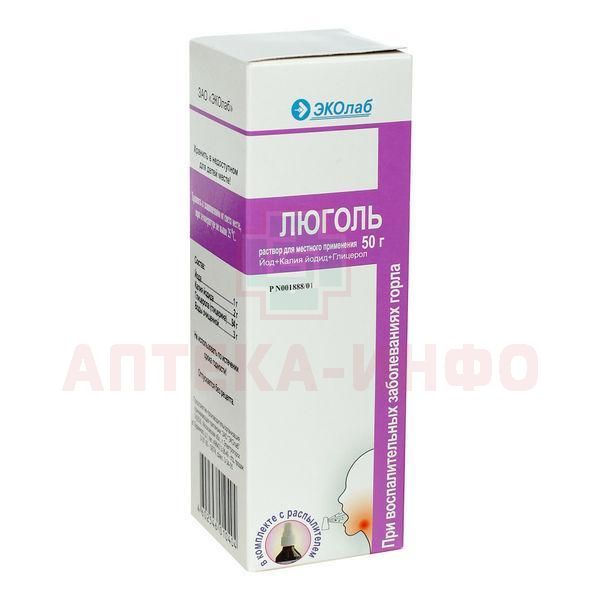 Люголь фл.(р-р д/мест. прим.) 50мл №1 (с крышкой-дозатором с распылителем/ наконечником) Эколаб