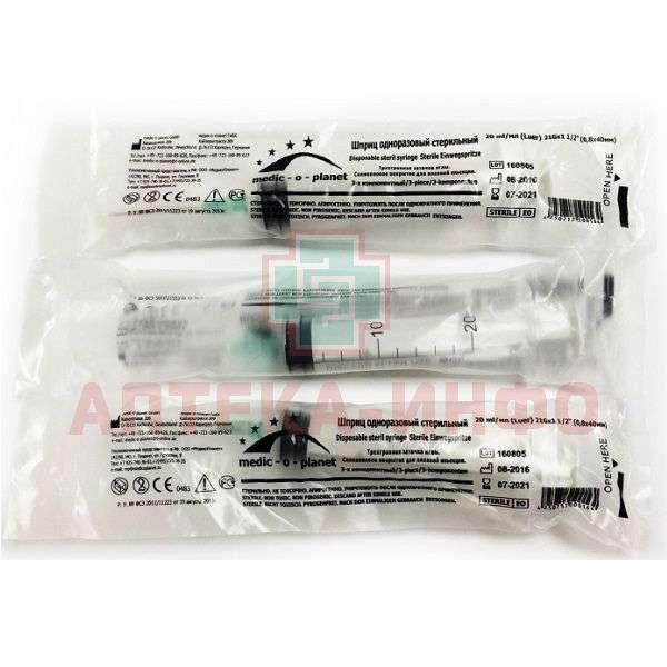 Шприц одноразовый с иглой 2мл (3-х комп.) 23G (игла 0,6х30) №1 Medic-o-Planet/Германия