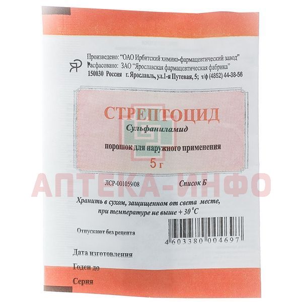 Стрептоцид пак. (пор. д/наруж. прим.) 5г №1 Ярославская ФФ/Россия