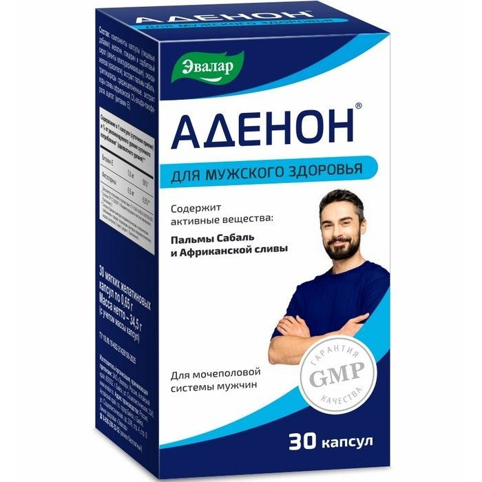 - АДЕНОН от компании «Эвалар» разработан специально для поддержания здоровья мочеполовой системы мужчин. Входящие в состав натуральные компоненты (экстракт пальмы сабаль, экстракт африканской сливы, витамин Е) полезны при аденоме предстательной железы.