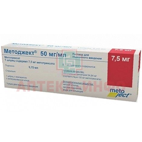 - 1 шприц соответствует содержанию метотрексата 7.5 мг