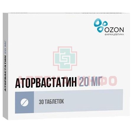 Аторвастатин таб. п/пл. об. 20мг №30 Озон/Россия