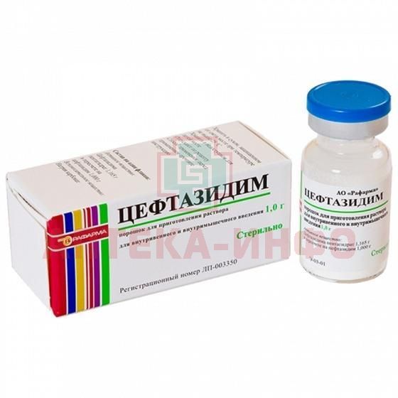 Цефтазидим фл.(пор. д/приг. р-ра д/в/в и в/м введ.) 1г Рафарма
