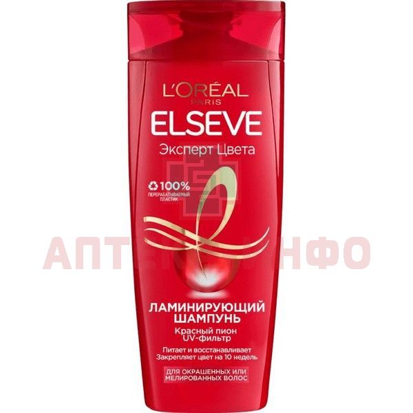 Эффективный шампунь-уход Elseve Эксперт Цвета подойдет для окрашенных или мелированных волос. В его составе – ламинирующий эликсир с красным пионом и UV-фильтром, обеспечивающий значительный результат сразу в трех направлениях: