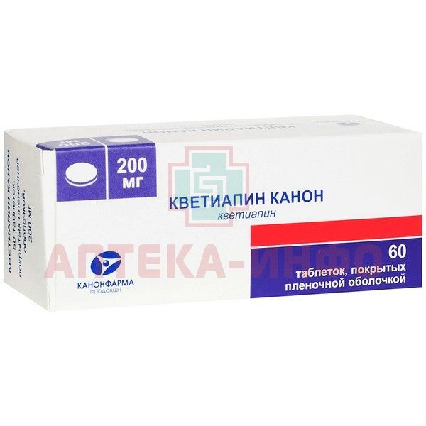 Кветиапин Канон таб. п/пл. об. 200мг №60 (10 х 6) Канонфарма Продакшн
