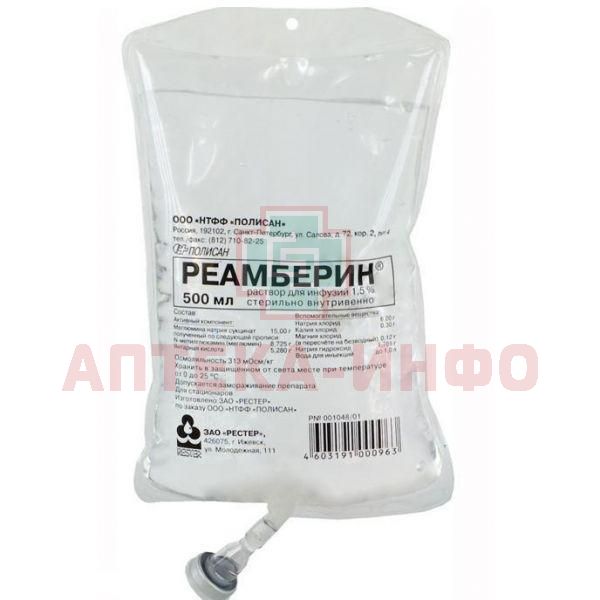 Реамберин конт.(р-р д/инф.) 1,5% 500мл №20 Полисан