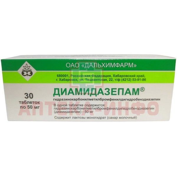 - гидразинокарбонилметилбромфенилдигидробенздиазепин (диамидазепам) - 50 мг