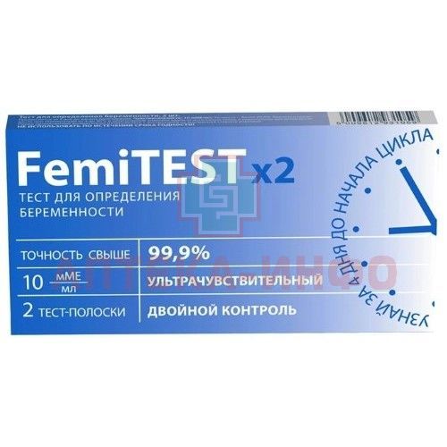 - ТЕСТ ДЛЯ ОПР БЕРЕМЕННОСТИ FEMITEST УЛЬТРАЧУВСТВИТЕЛЬНЫЙ - набор из двух тест-полосок.