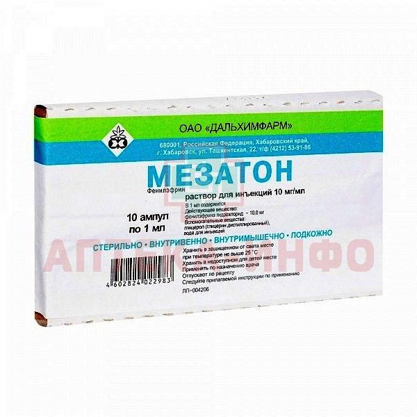 Мезатон амп.(р-р д/ин.) 10мг/мл 1мл №10 Дальхимфарм/Россия