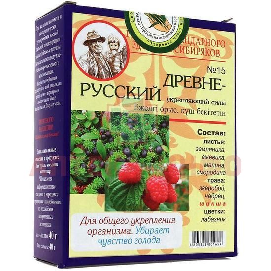 Чай народный №15 - это классический русский чай приготовленный по рецептам 18-19 веков. Отличаясь немного по составу в той или иной губернии, он дает практически одинаковый результат - укрепляющий богатырский дух и силу. Чай народный «ДревнеРусский» обладает замечательным вкусом и любимым всеми ароматом смородины, земляники, малины, лесных и луговых трав.