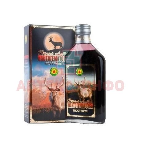 Состав: кровь алтайского марала или северного пятнистого оленя, сахар, вода очищенная, аскорбиновая кислота (витамин С), ароматизатор натуральный эссенция «Малина», спирт этиловый ректификованный менее 1%.