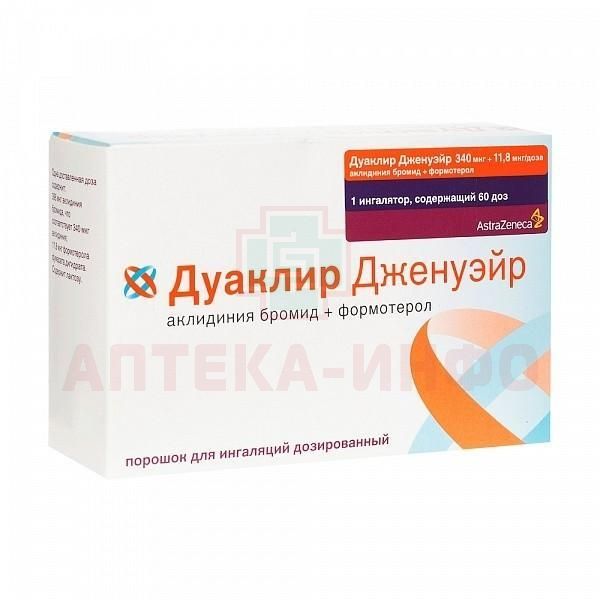 Дуаклир Дженуэйр пор. д/ингал. доз. 340мкг + 11.8мкг/доза 60доз Industrias Farmaceuticas Almirall/Испания