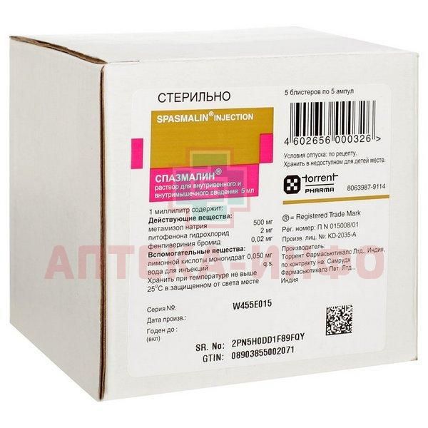 Спазмалин амп.(р-р д/ин.) 5мл №25 Torrent Pharmaceuticals/Индия