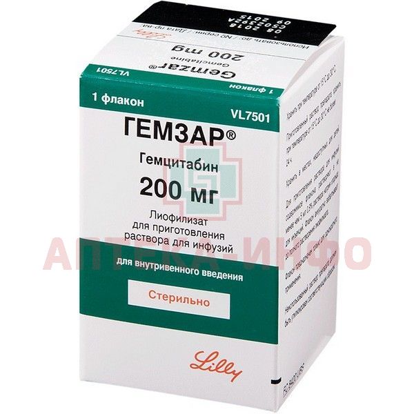 Гемзар фл.(лиоф. д/приг. конц. д/приг. р-ра д/инф.) 200мг №1 Vianex S.A./Греция/Lilly France/Франция
