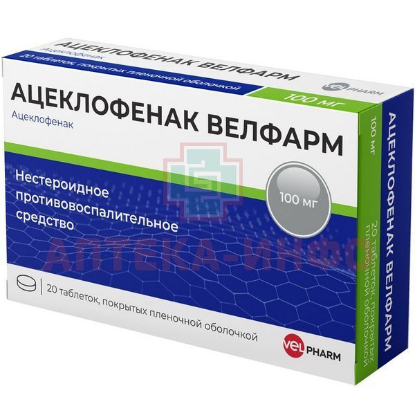 Ацеклофенак Велфарм таб. п/пл. об. 100мг №20 Велфарм/Россия
