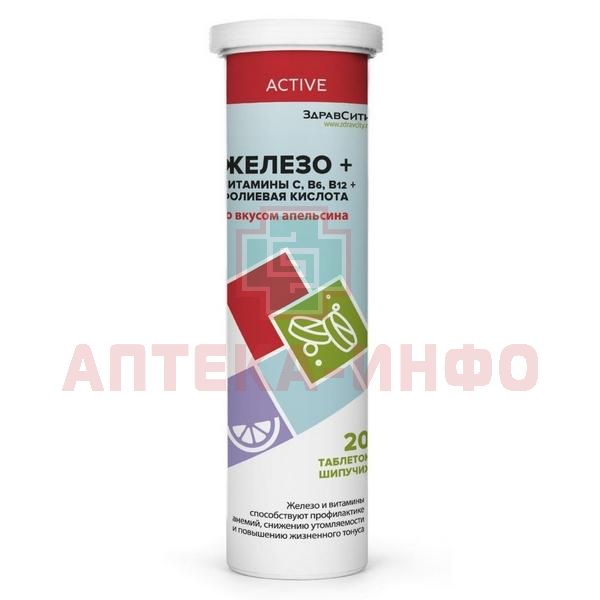 ЗДРАВСИТИ Железо, Вит. С, В6, В12, фолиевая кислота и апельсин таб. шип. №20 Pez Production Europe Kft. HU/Венгрия