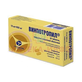Винпотропил таб. пл./об. 10мг + 800мг №30 уп. конт.яч.-пач.карт. Канонфарма Продакшн