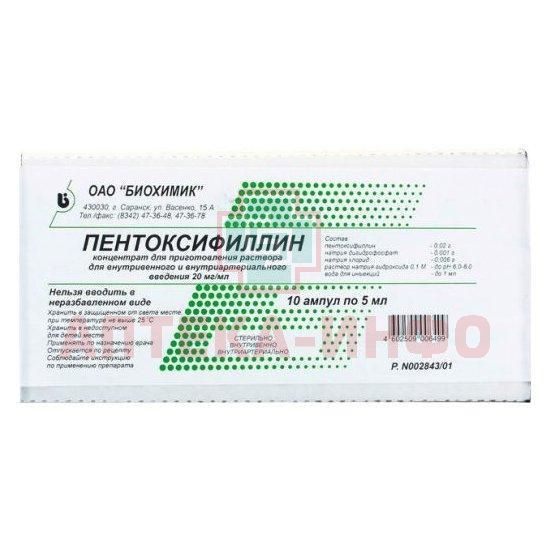 Пентоксифиллин амп.(конц. д/приг. р-ра д/в/в и в/арт. введ.) 20мг/мл 5мл №10 (короб. карт.) Биохимик