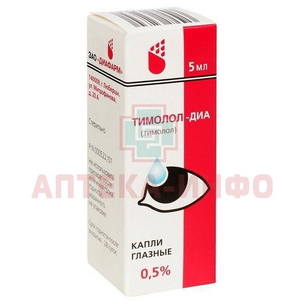 По 5 или 10 мл Тимолола-ДИА капли глазные 0,25% или 0,5% во флаконы стеклянные, укупоренные пробками резиновыми и обкатанные алюминиевыми колпачками, либо по 5 или 10 мл во флаконы полиэтиленовые или полипропиленовые, герметизированные капельницами и навинчивающимися крышками.