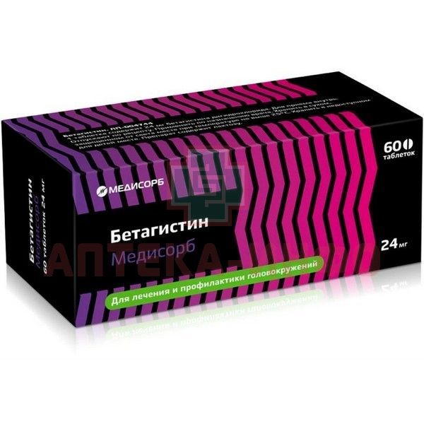 Бетагистин Медисорб таб. 24мг №60 уп.конт.яч. Медисорб