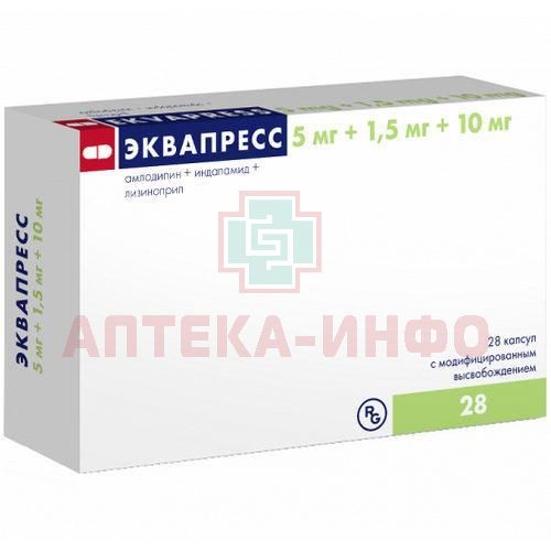 Эквапресс - фиксированная комбинация антигипертензивных компонентов амлодипина, индапамида и лизиноприла, которые обладают взаимодополняющими механизмами действия, позволяющими контролировать артериальное давление (АД), а также синергично оказывают кардиопротективное действие.