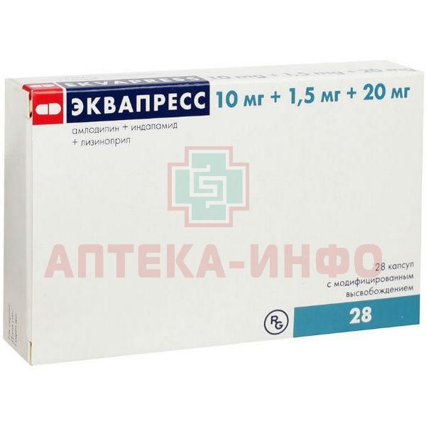 Эквапресс - фиксированная комбинация антигипертензивных компонентов амлодипина, индапамида и лизиноприла, которые обладают взаимодополняющими механизмами действия, позволяющими контролировать артериальное давление (АД), а также синергично оказывают кардиопротективное действие.