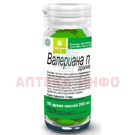 - «Валериана П» - успокаивающий и снотворный препарат растительного происхождения. - драже светло-зеленого цвета (допускается мраморность цвета).