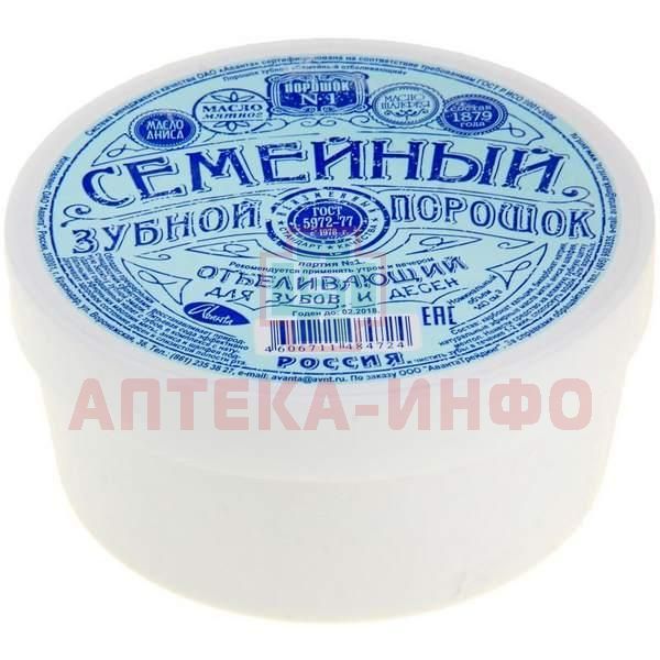 Зубной порошок СЕМЕЙНЫЙ Отбеливающий 140куб.см. (62г) Аванта/Россия