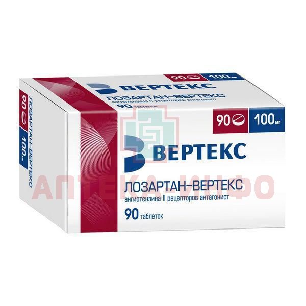 Лозартан-ВЕРТЕКС таб. п/пл. об. 100мг №90 Вертекс/Россия