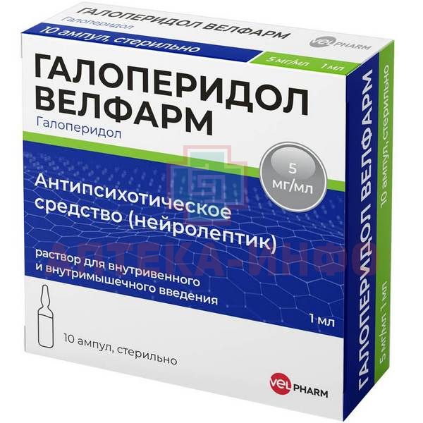 Галоперидол Велфарм амп.(р-р д/в/в и в/м введ.) 5мг/мл 1мл №10 Велфарм