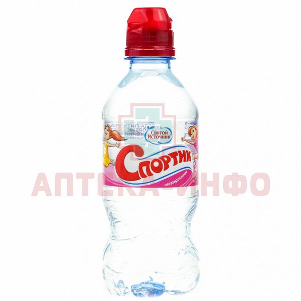 Святой Источник «Спортик» подходит для детей с 3-х лет. Вода обладает специальным микробиологическим составом, поэтому она абсолютно безопасна для детского организма. Благодаря спортивному колпачку, вода не прольется из бутылки, когда ребенок будет пить в дороге или в перерывах между играми. А за счет компактного объема 0,33 л бутылка легко поместится в рюкзак или в карман сумки. Дизайн «Спортик» с яркими колпачками и забавными героями на этикетке понравятся и мальчикам, и девочкам.Состав