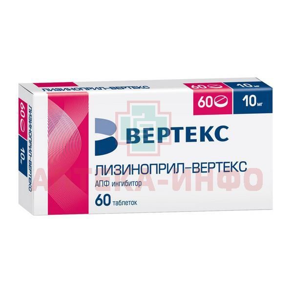 Лизиноприл-ВЕРТЕКС таб. 10мг №60 (30х2) Вертекс