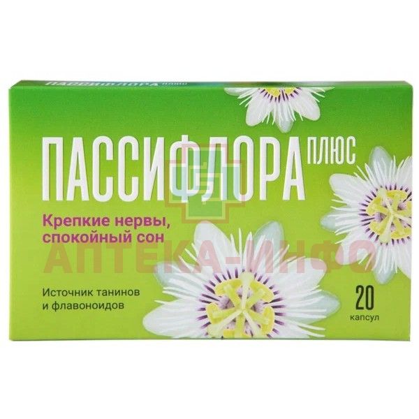 Крепкие нервы-спокойный сон! Лекарственные травы в составе Пассифлора Плюс способствуют снижению уровня тревожности, избавлению от негативных эмоций, нормализации сна.Экстракт валерианы: классическое успокаивающее средство при состояниях нервного возбуждения, неврозах сердечно-сосудистой системы.