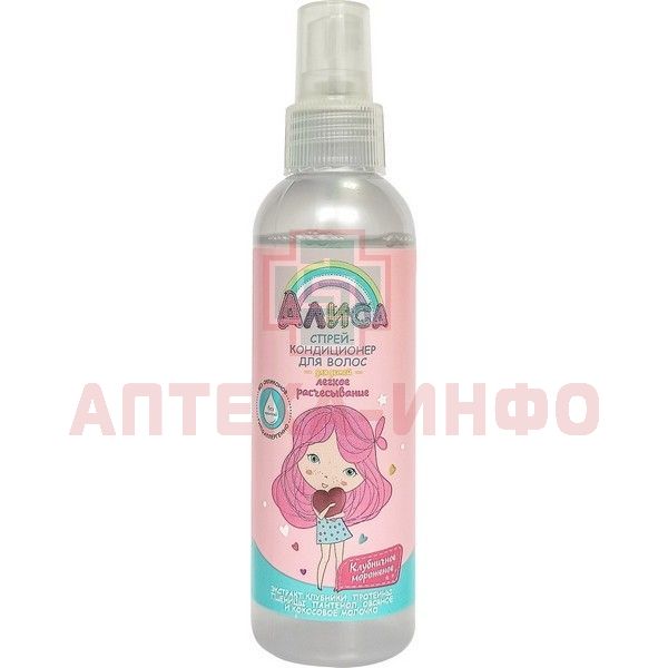 - АЛИСА СПРЕЙ-КОНДИЦИОНЕР ДЛЯ ВОЛОС ДЛЯ ДЕТЕЙ ЛЕГКОЕ РАСЧЕСЫВАНИЕ - несмываемый спрей-кондиционер Алиса поможет обладательницам длинных и вьющихся волос облегчить процедуру ежедневного расчесывания, делая ее простой и безболезненной.