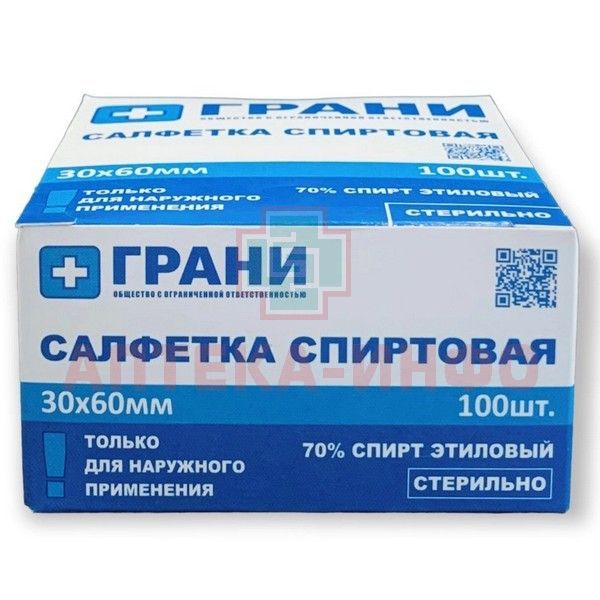 Салфетки Спиртовая однораз. д/ин. 30х60мм №100 Грани