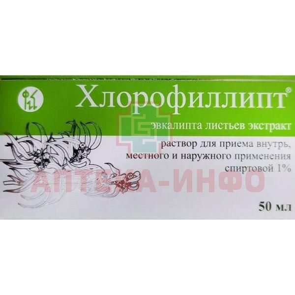 Хлорофиллипт фл.(р-р д/приема внутрь местн. и наружн. прим. спиртовой) 1% 50мл Кировская фармацевтическая фабрика