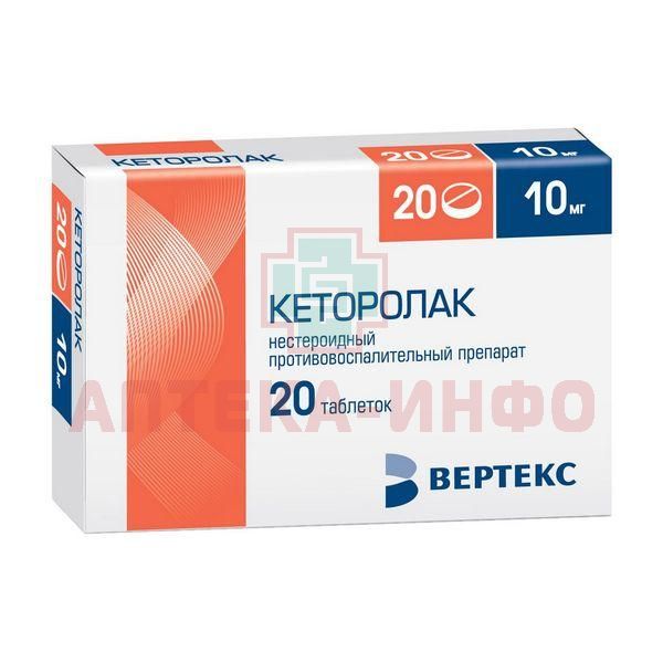 Кеторолак-ВЕРТЕКС таб. 10мг №20 (10х2) Вертекс/Россия