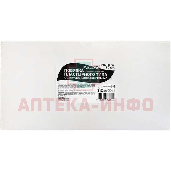 Повязка WellFix пластырного типа суперабсорбирующая стер. 20х10см №50 Эвтекс/Россия
