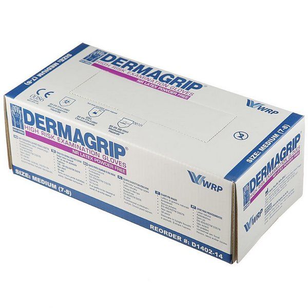 - Нестерильные сверхпрочные латексные перчатки Dermagrip High Risk Examination Gloves