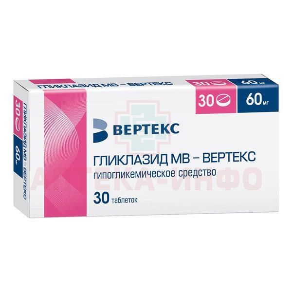 Гликлазид МВ ВЕРТЕКС таб. с пролонг. высвоб. 60мг №30 Вертекс