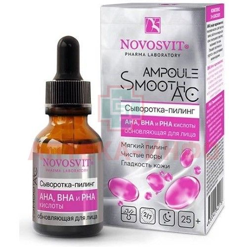 Сыворотка-пилинг NOVOSVIT AMPOULE SMOOTH AC д/лица AHA BHA и PHA кислоты Обновляющая 25мл Народные промыслы/Россия